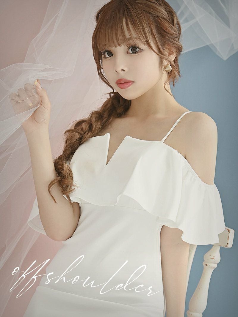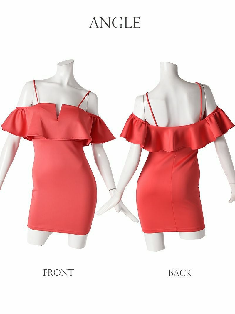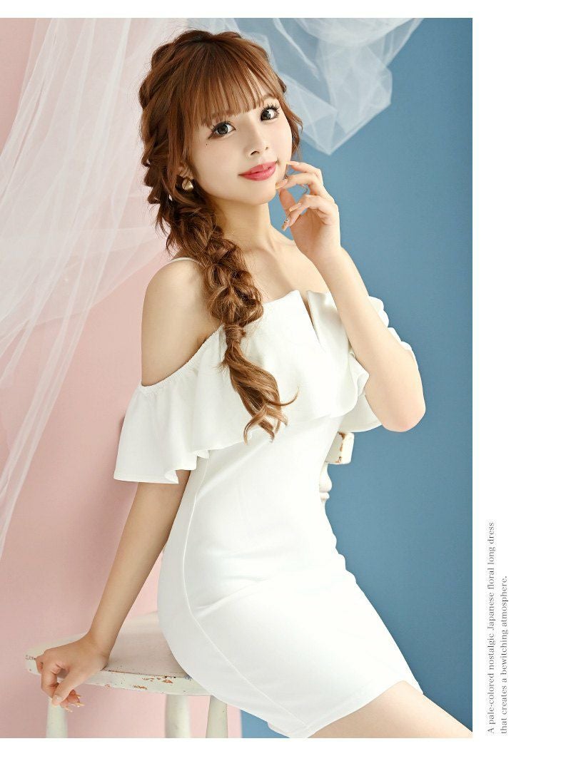 【訳ありアウトレット】ミニドレス袖付きオフショルティアードフリルキャバドレス【RyuyuChick】