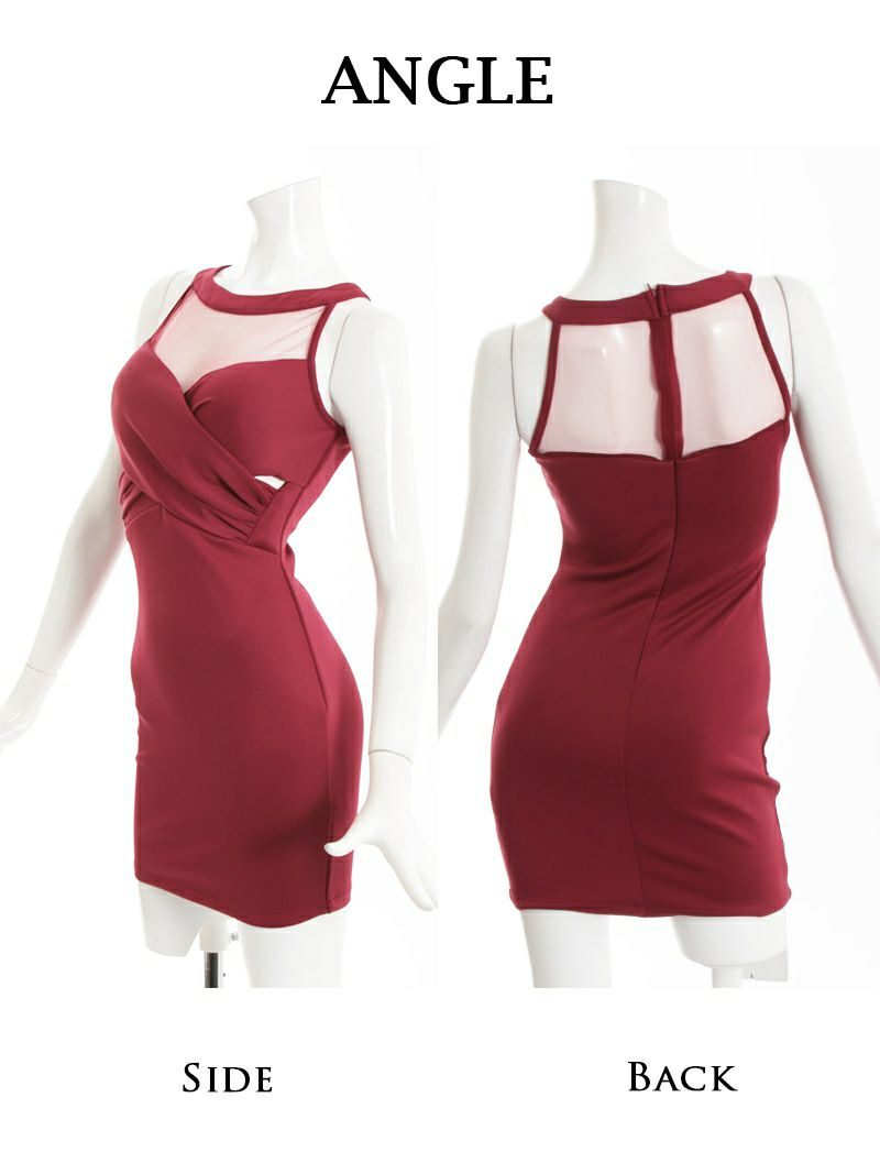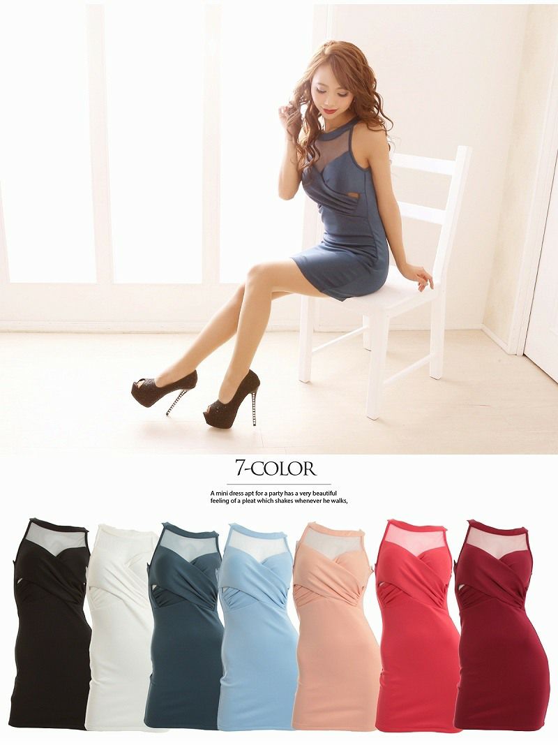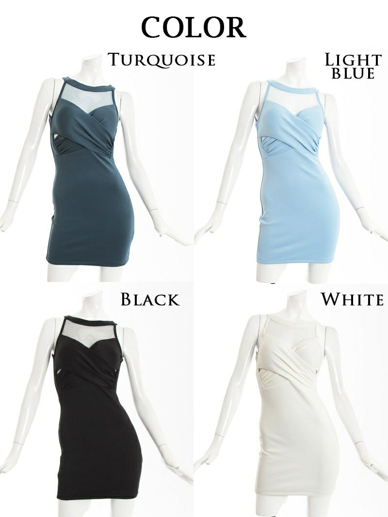 4. 【訳ありアウトレット】バストクロスワンカラーキャバドレス【RyuyuChick】(S/M/L)(ブラック/ホワイト/ワイン/ライトブルー/ピンク/ライトピンク/ターコイズ)