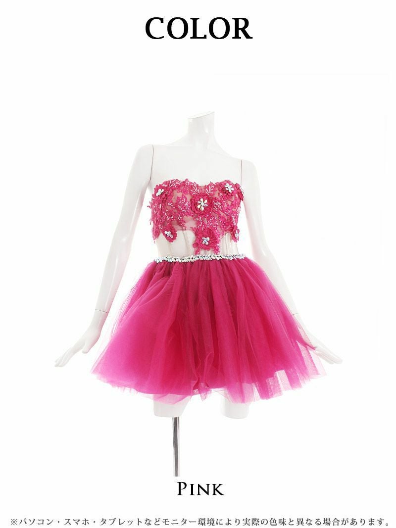 訳ありでも可愛いピンク 【訳ありアウトレット】ビジュー付ベアピンクフレアキャバドレス【Ryuyu】(S)(ピンク) ptpl