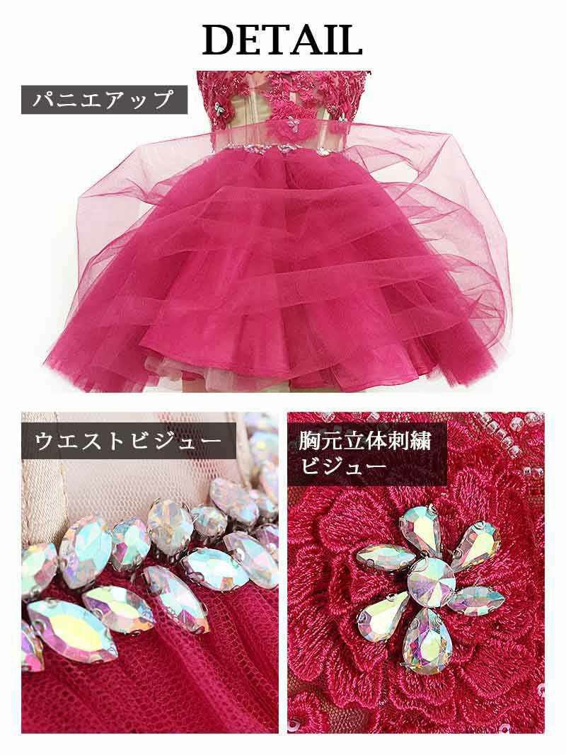 5. 【訳ありアウトレット】ビジュー付ベアピンクフレアキャバドレス【Ryuyu】(S)(ピンク) ptpl