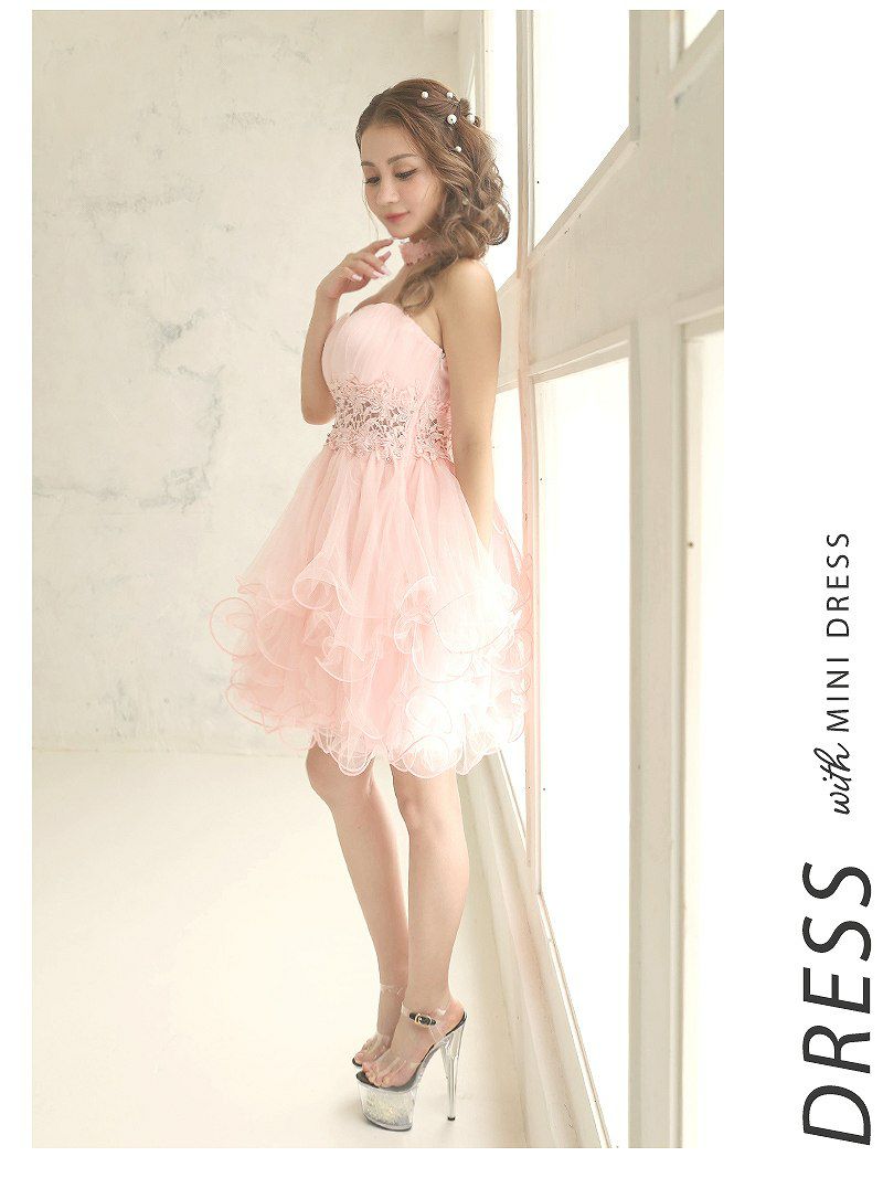 6. 【訳ありアウトレット】刺繍ボリュームフリルのキャバミニドレス【Ryuyu】(XS/S/M/L)(ピンク/シルバー/ブルー) ptpl