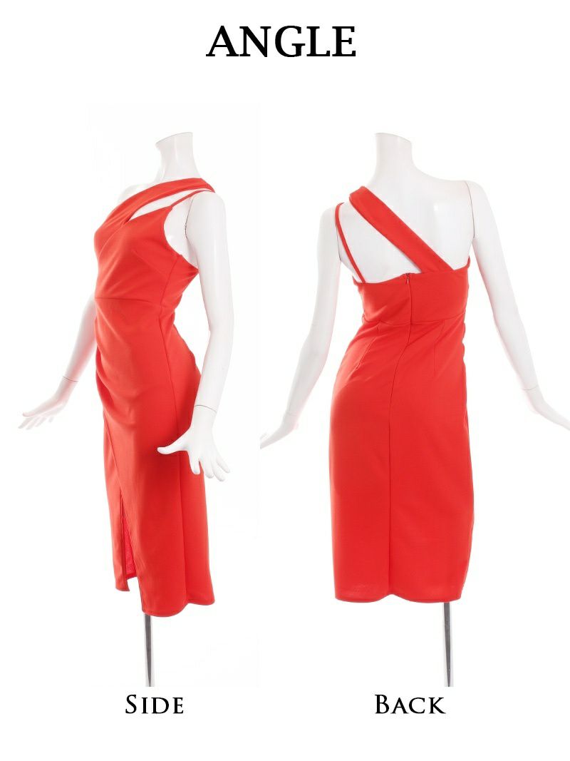 スリットが入った足魅せデザインと、カシュクール風ワンショルダーがセクシーさを引き立てます。