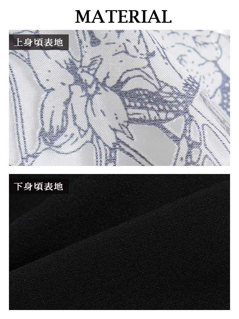 大人の魅力を引き立てる花柄とレースがポイント。オフショルダーと袖付きデザインで上品な印象に。