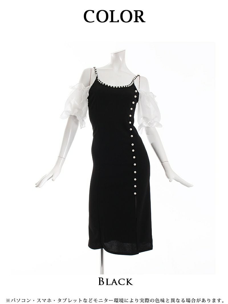 上品なモノトーンデザインで、パールとチュール袖が華やかさを演出。