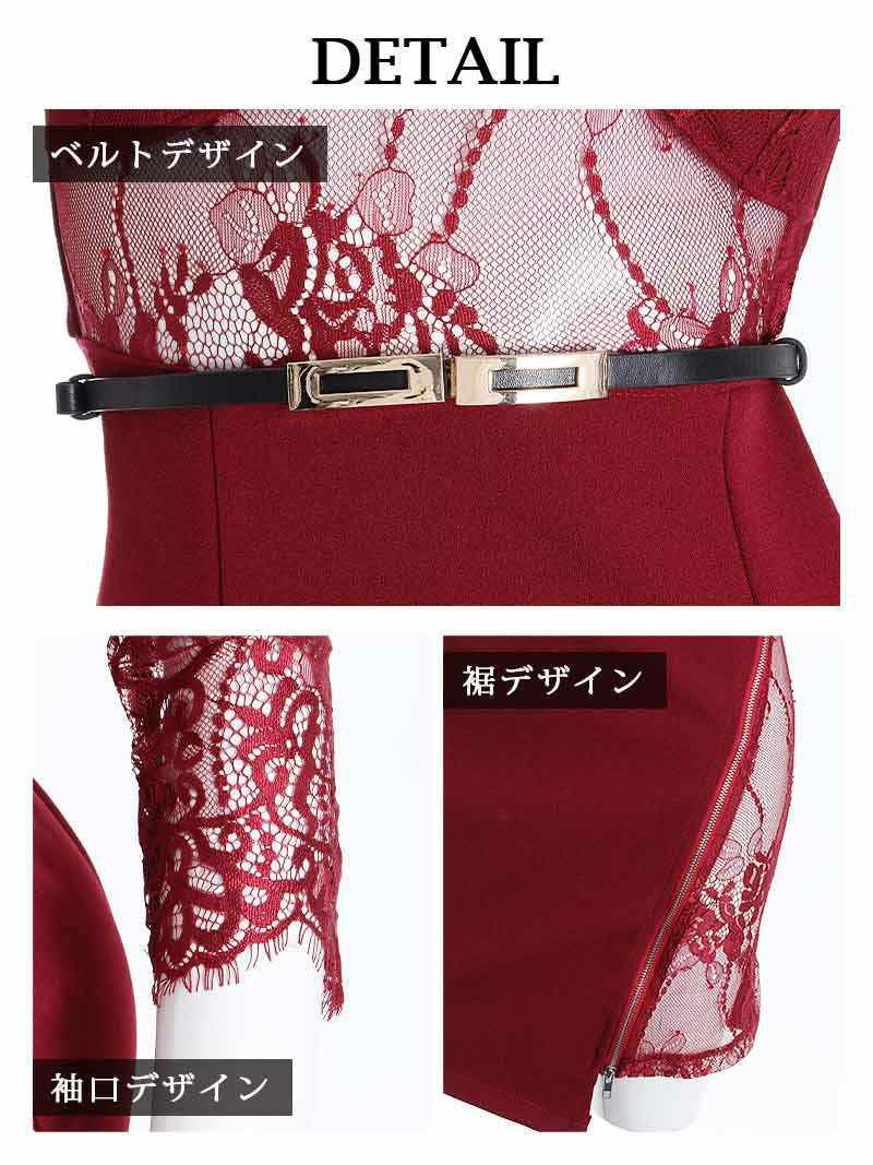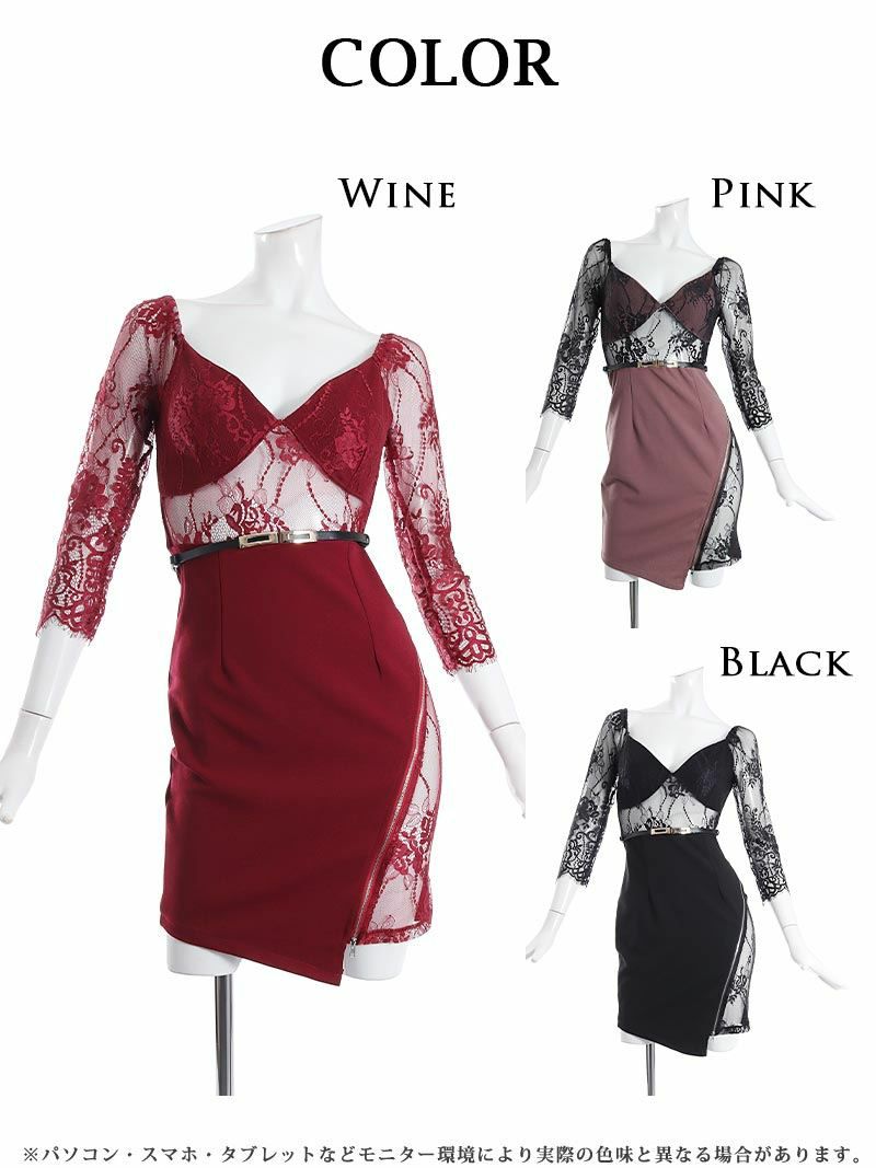 訳ありえちえちレース 【訳ありアウトレット】五分袖付き透けレースキャバクラミニドレス【Ryuyu】(S/M/L)(ワイン/ピンク/ブラック)