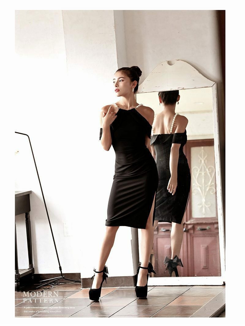 訳ありクール美ライン 【訳ありアウトレット】cool膝丈セクシー韓国ミニ丈キャバドレス【DAYS PIECE】(S/M/L/XL)(ブラック)