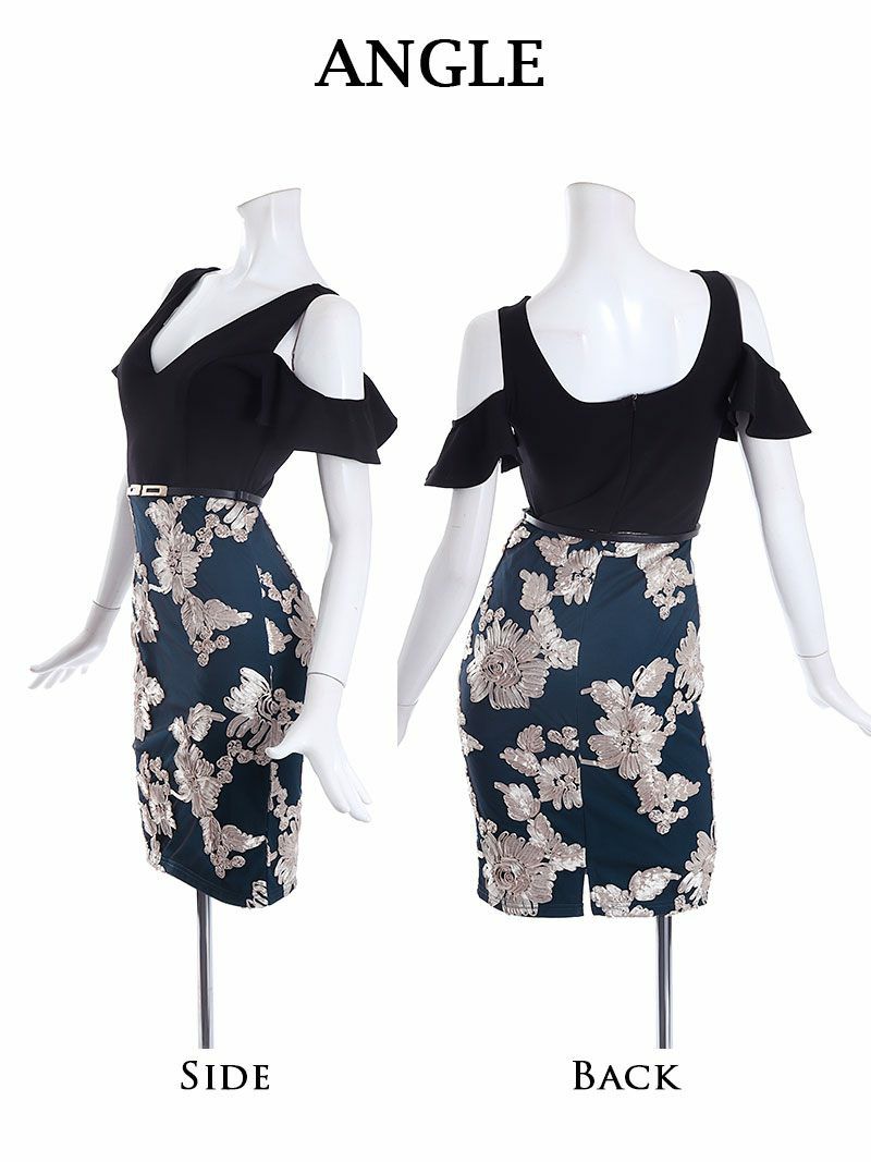 【訳ありアウトレット】刺繍フラワー袖付き肩魅せミディ丈キャバドレス【Belsia】