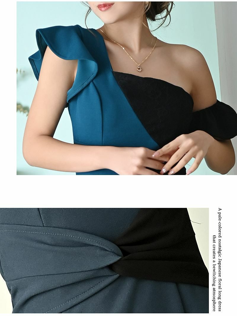 上品な袖付きデザインで、華やかさとセクシーさを兼ね備えた一着です。
