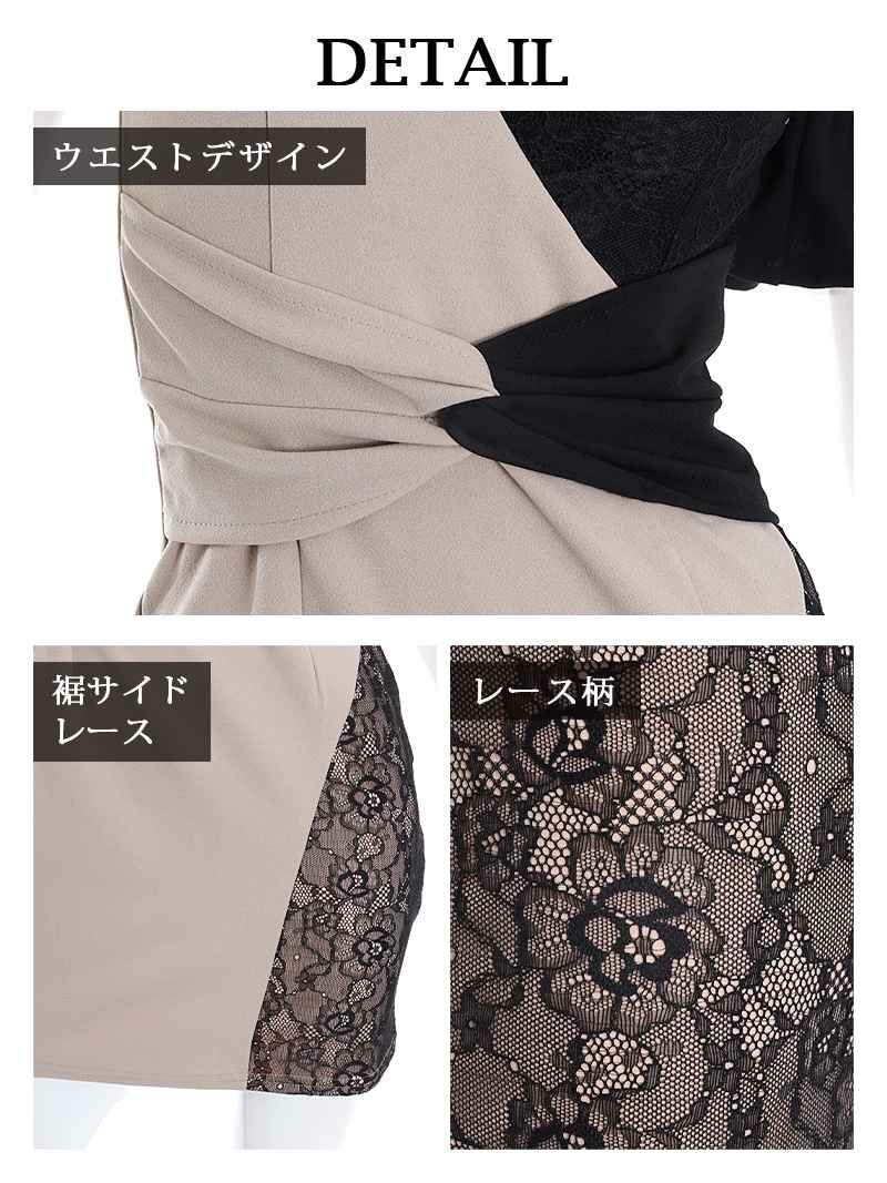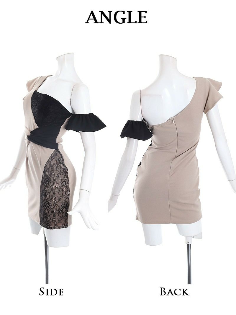 セクシーな肩魅せデザインとレースが、デコルテを美しく演出しヌーディーな魅力をプラス。