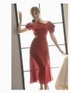 【訳ありアウトレット】半袖アシンメトリースリットキャバミニドレス【RyuyuChick】
