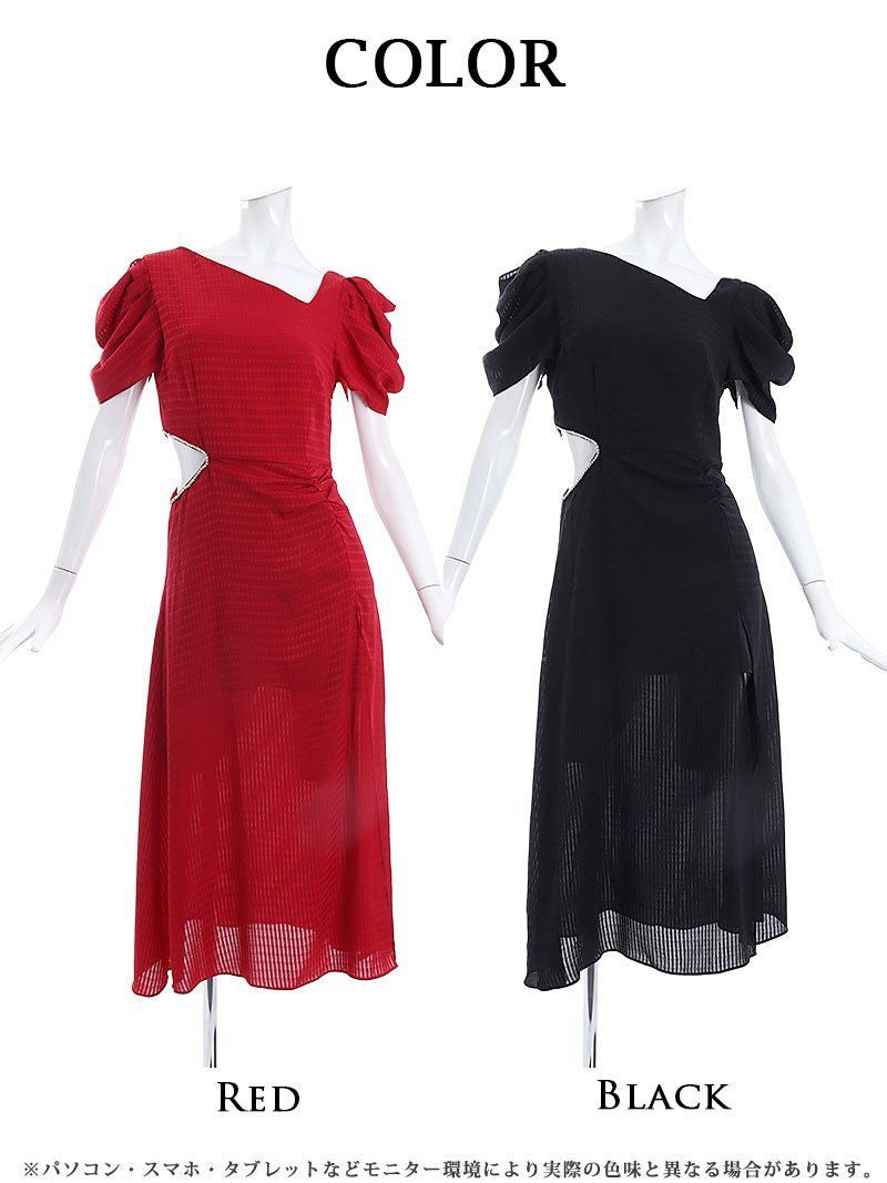 訳あり透けスリット 【訳ありアウトレット】半袖アシンメトリースリットキャバミニドレス【RyuyuChick】(S/M/L/XL)(ブラック/レッド)