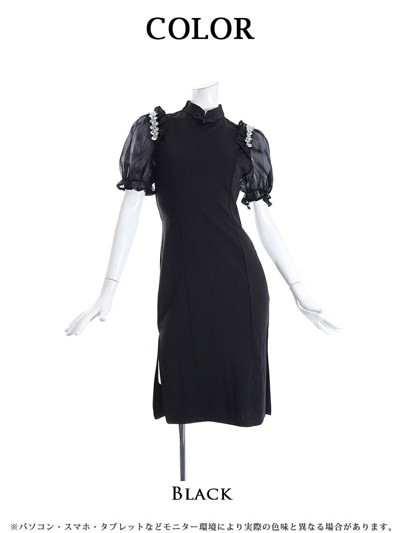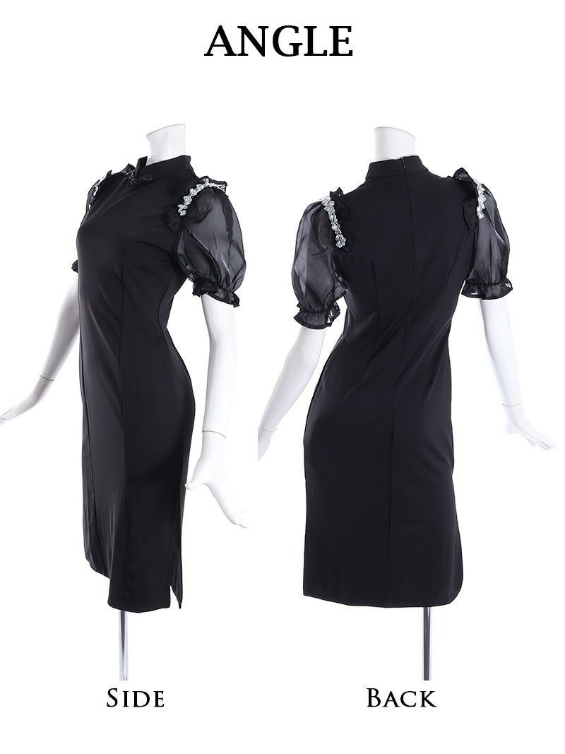 【訳ありアウトレット】パフ袖のミディ丈キャバクラミニドレス【Belsia】