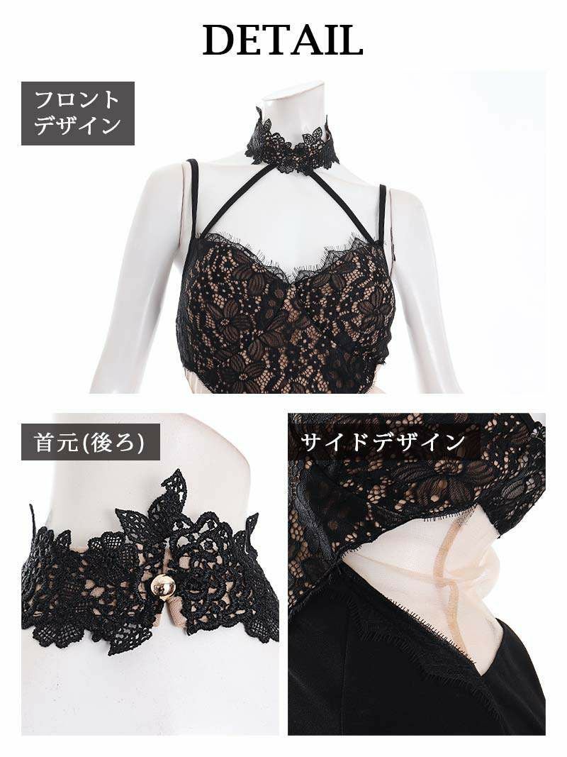 チョーカー付きで華やかさUP!タイトなシルエットでスタイルを美しく魅せる仕上がり。