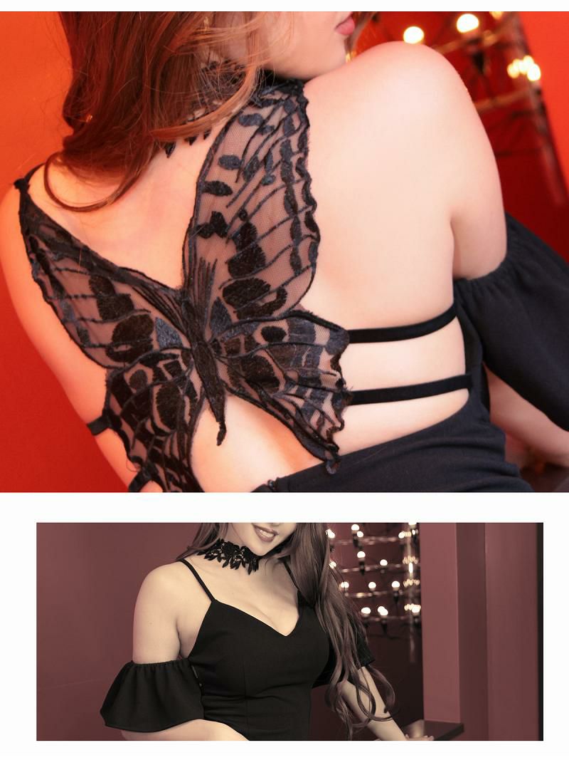 セクシーな背中レースと蝶のデザインが大人の魅力を引き立て、エロさを演出。