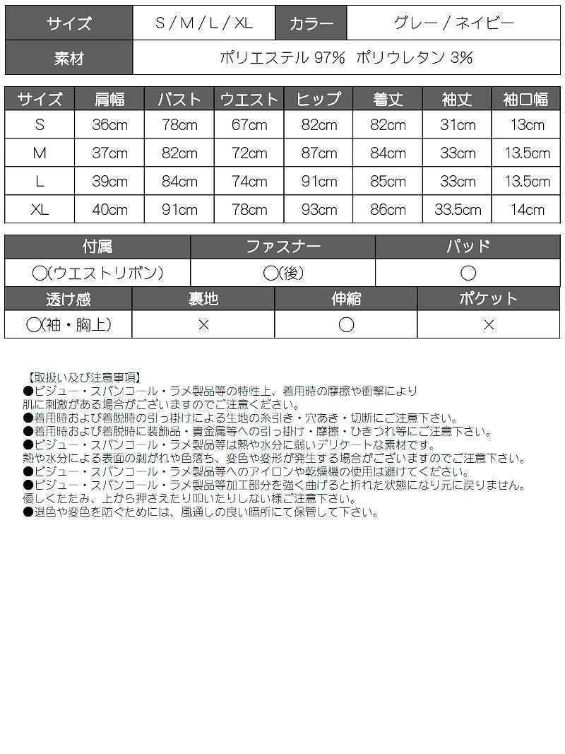 5. 【訳ありアウトレット】フラワー刺繍レース袖付きペプラムキャバミニドレス【Belsia】(S/M/L/XL)(グレー/ネイビー)