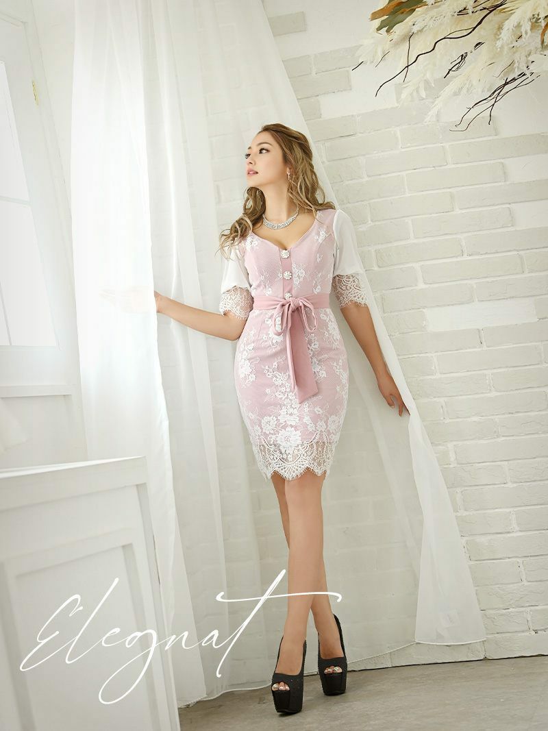 【Ryuyu】訳ありアウトレット!レースとリボンで可愛さを引き立てるキャバミニドレス。お得な価格で手に入る最後のチャンス!