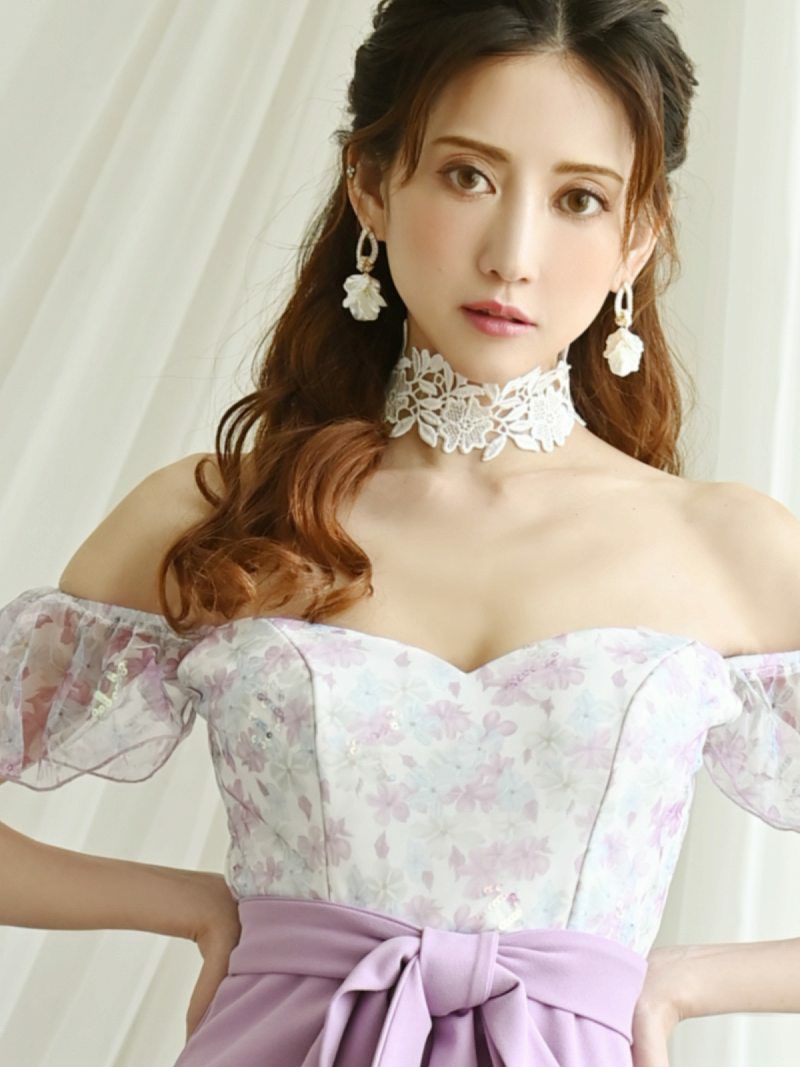 【訳ありアウトレット】豪華オフショルダー小花柄キャバミニドレス【Belsia】