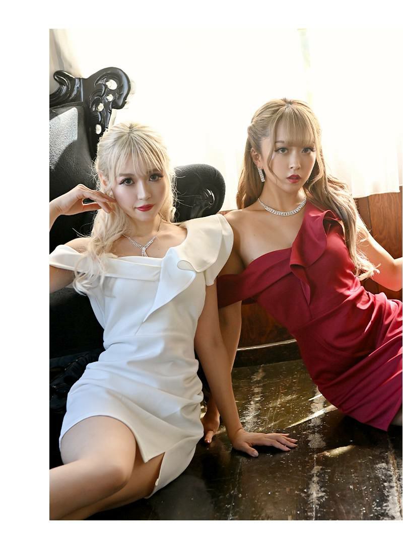 【Ryuyu】のワンショルダー美ラインタイトキャバミニドレスは、大人の女性にぴったりのセクシーな一着。