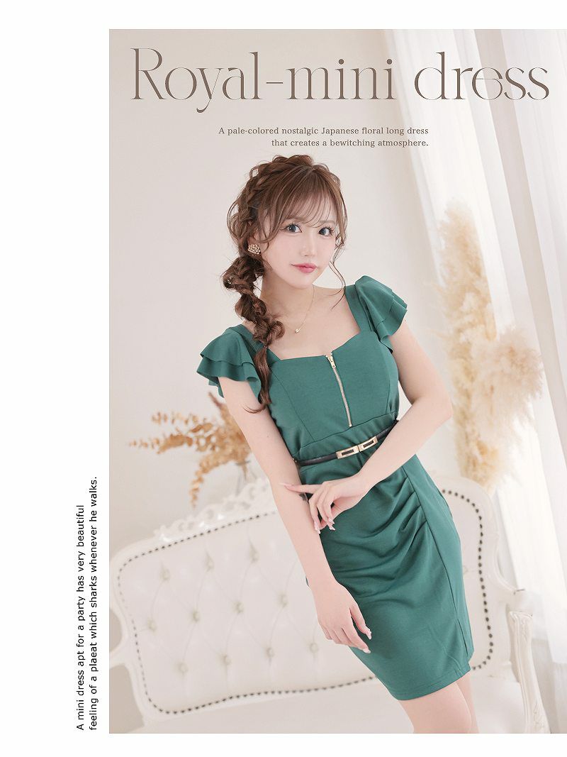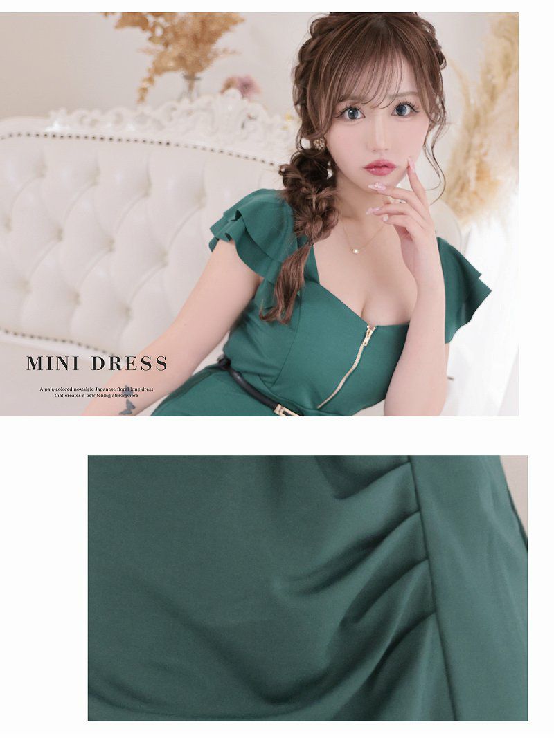 7. 先行予約10%OFF¥2990→¥2691!※予約販売※バストジップフリル袖タイトミニドレス りせり 着用 キャバドレス【RyuyuChick】(S/M/L/XL(2L)/XXL(3L))(グリーン/ブルー)