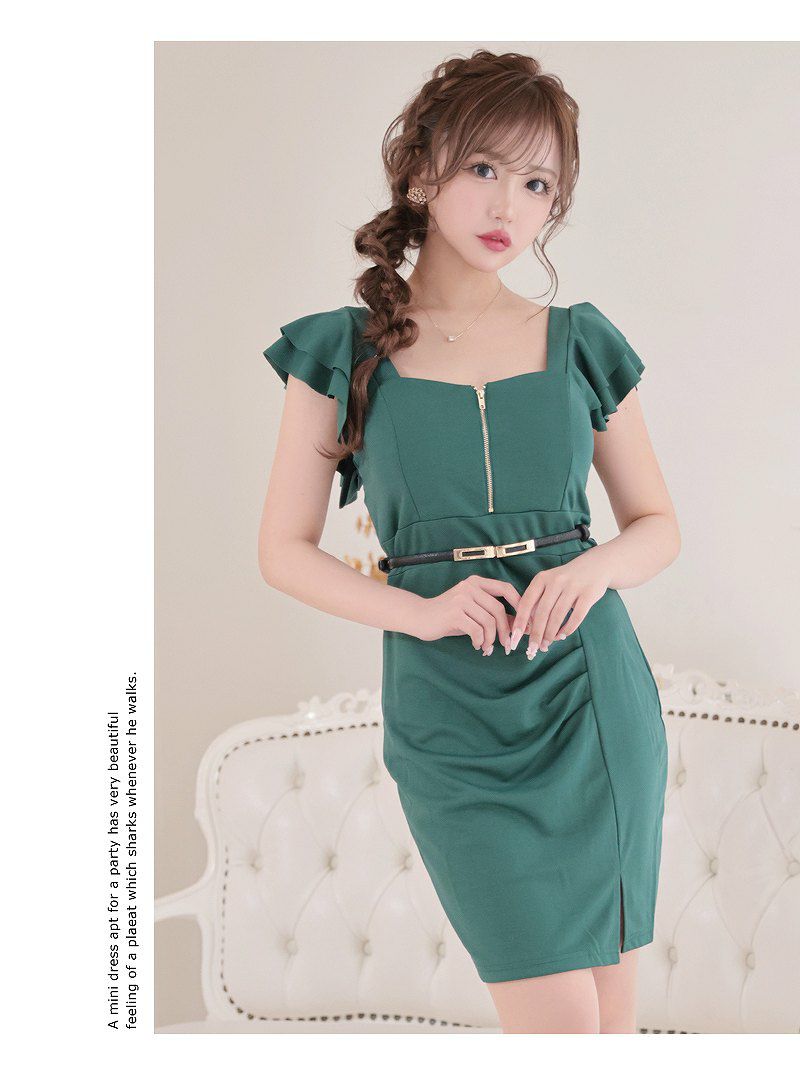 5. 先行予約10%OFF¥2990→¥2691!※予約販売※バストジップフリル袖タイトミニドレス りせり 着用 キャバドレス【RyuyuChick】(S/M/L/XL(2L)/XXL(3L))(グリーン/ブルー)