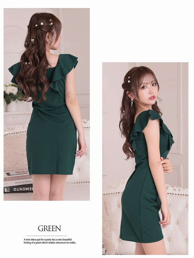 5. バストジップフリル袖ミニドレス りせり 着用 キャバドレス【RyuyuChick】(M/L/XL(2L))(ブラック/ネイビー/グリーン/ワイン)