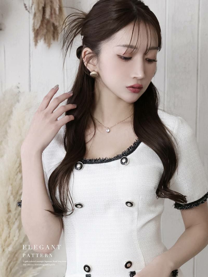 韓国風ライトツイード袖付きキャバドレス【Ryuyu】
