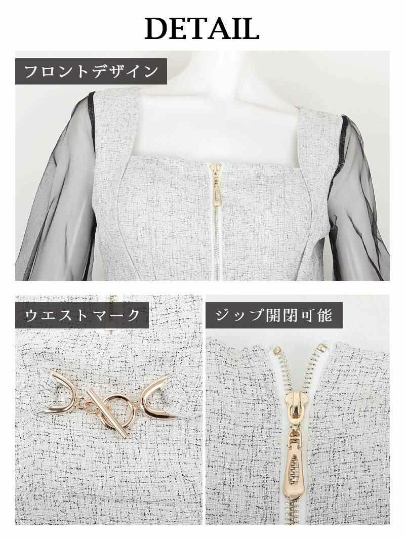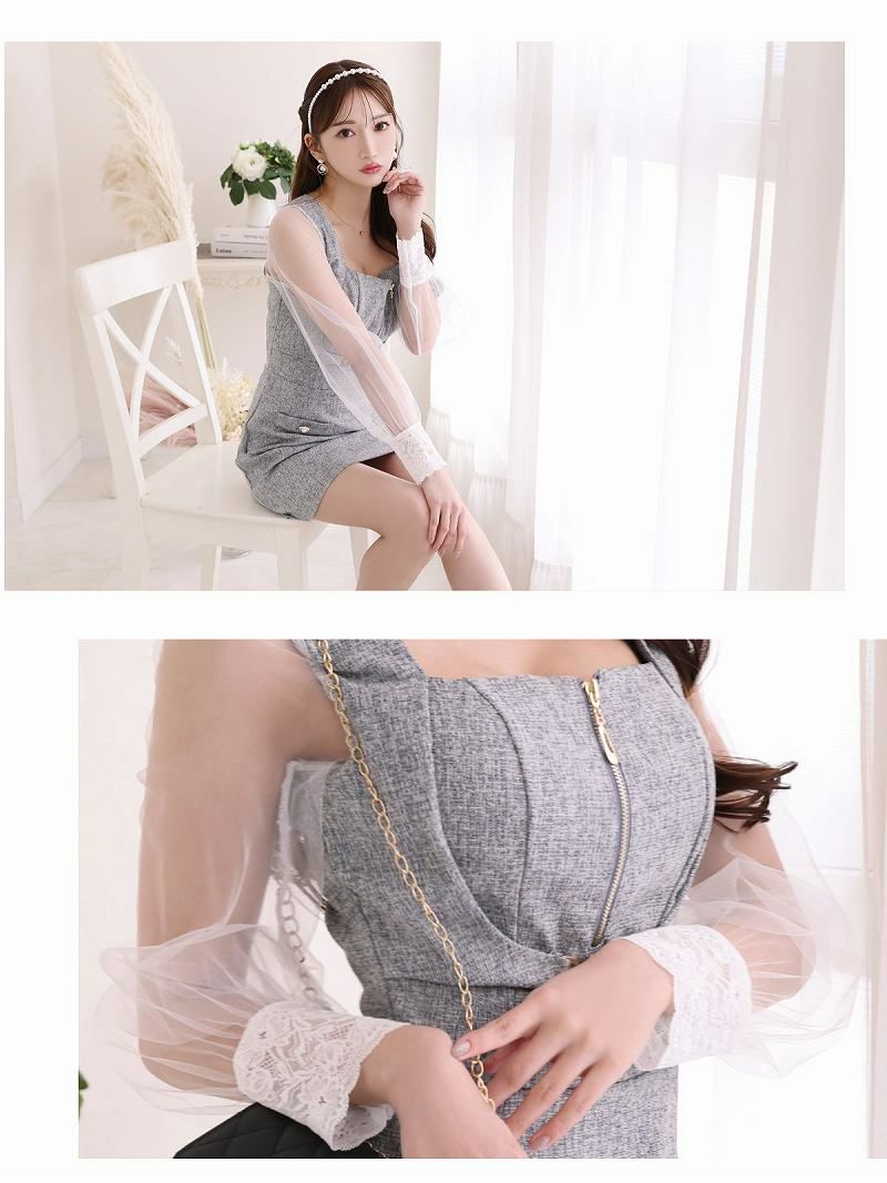 小悪魔系キャバドレスで夢中にさせる あざといバストジップミックスツイードミニドレス【Ryuyu】(S/M/L)(グレー/ホワイト)