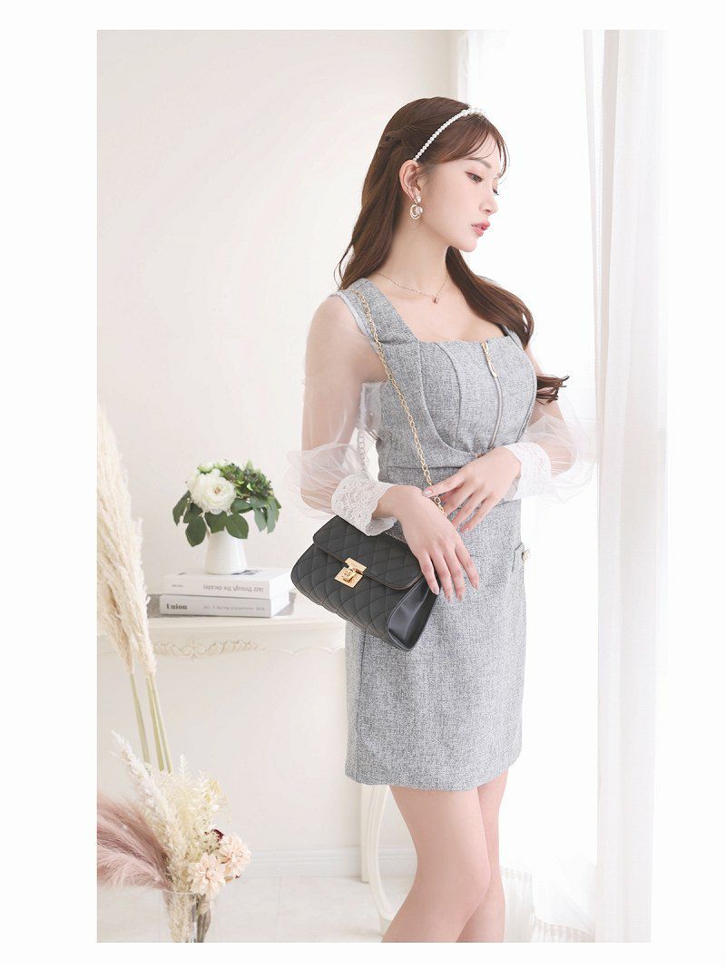 4. あざといバストジップミックスツイードミニドレス【Ryuyu】(S/M/L)(グレー/ホワイト)