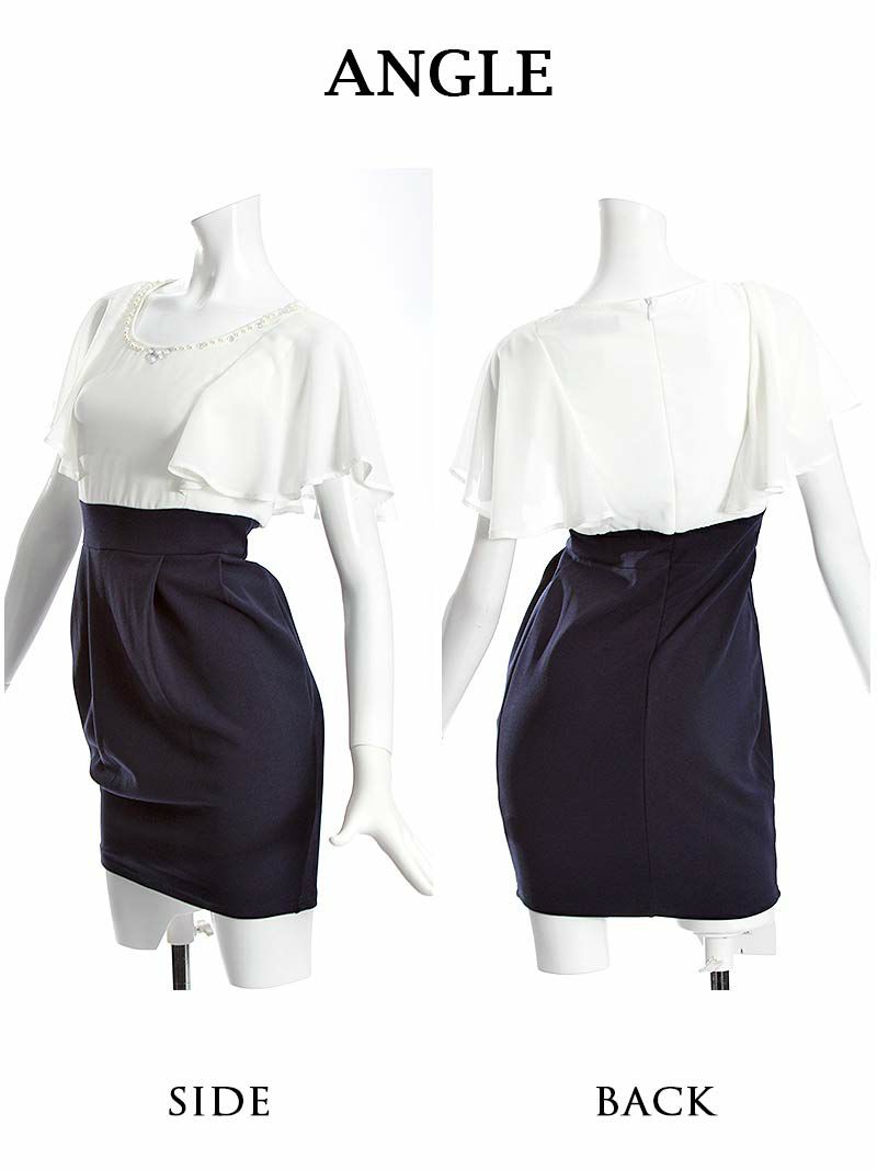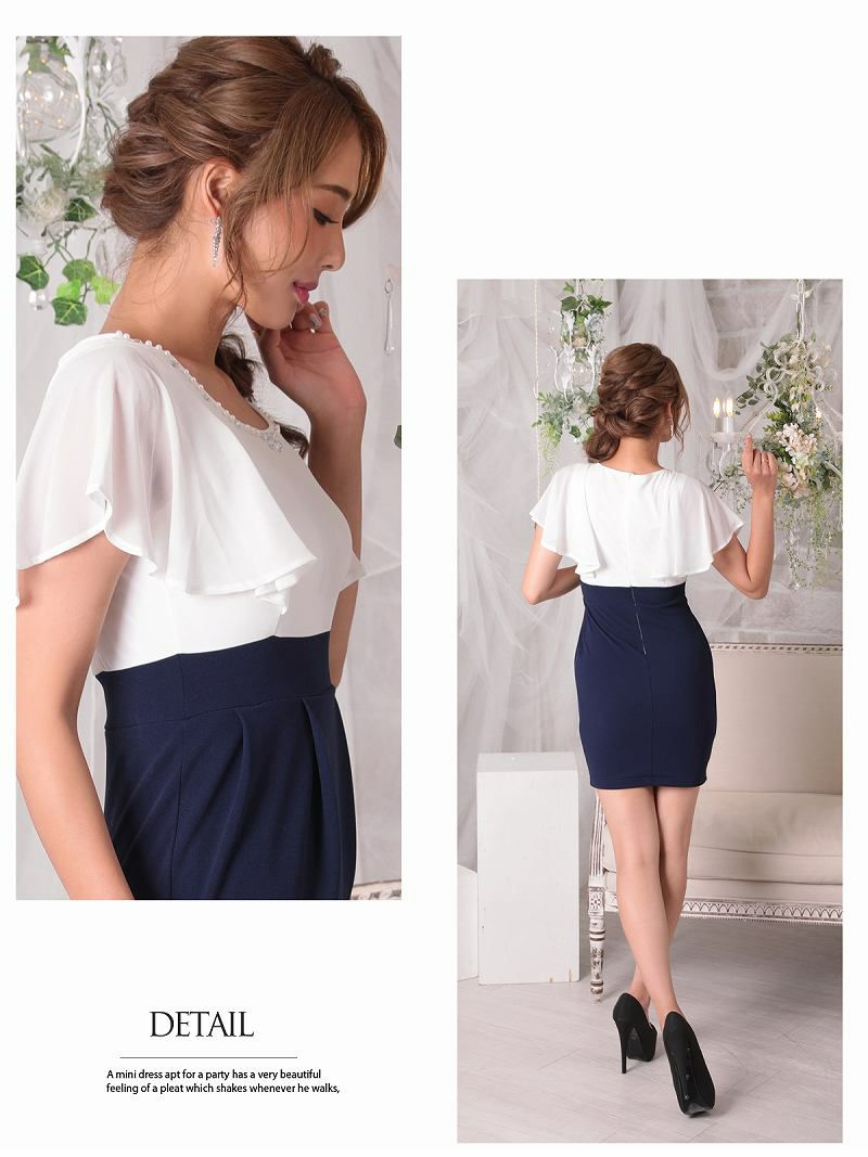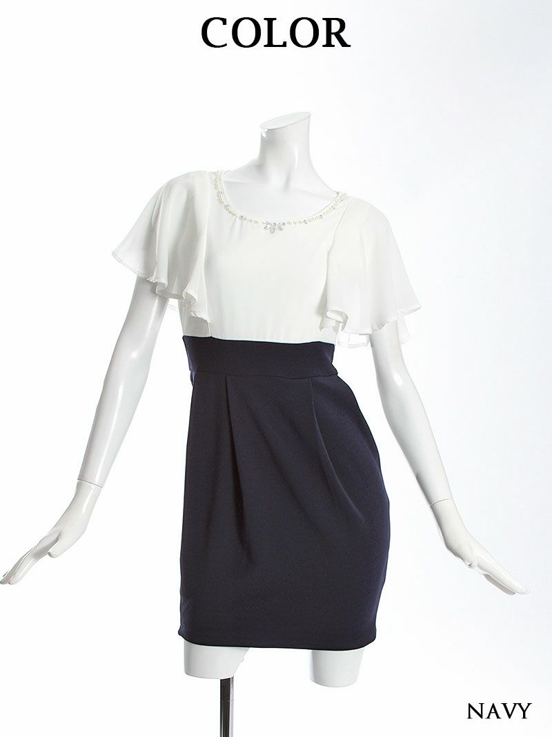 訳ありハイウエストが可愛い 【訳ありアウトレット】ふわフリル袖付キャバクラミニドレス【RyuyuChick】(S/M/L)(ネイビー)
