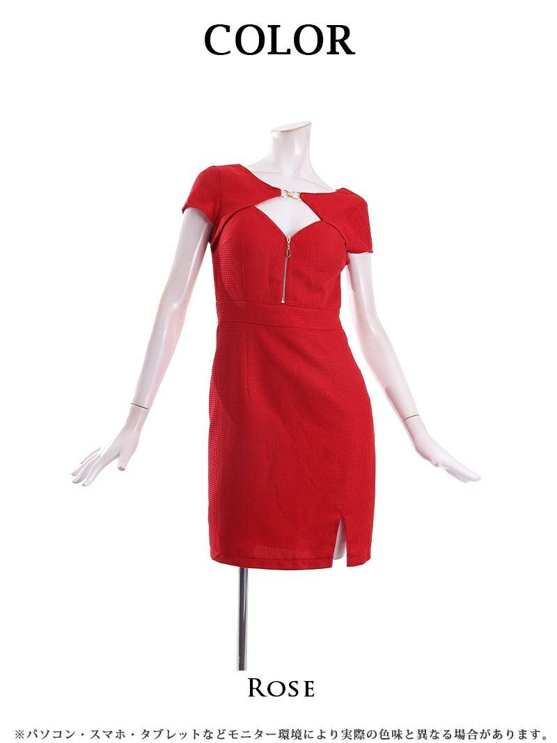 5. 【訳ありアウトレット】袖付ハイウエスト妖艶キャバ嬢ミニドレス【BelsiaLUX】(S/M/L)(ローズ)
