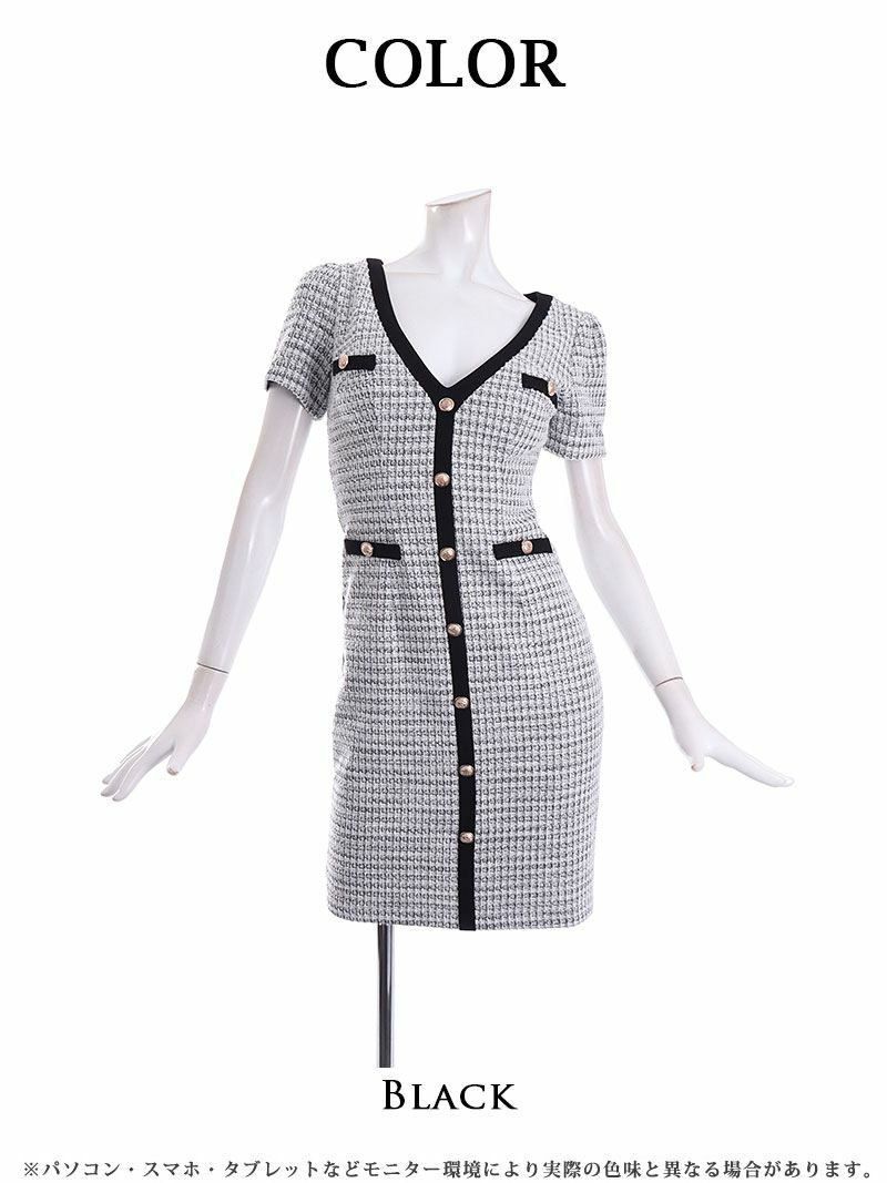 上品なツイード素材とミックス柄が洗練された印象を与えるキャバドレス。