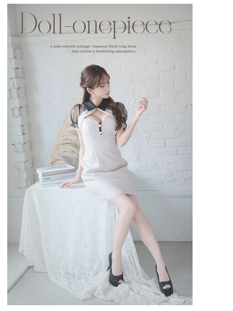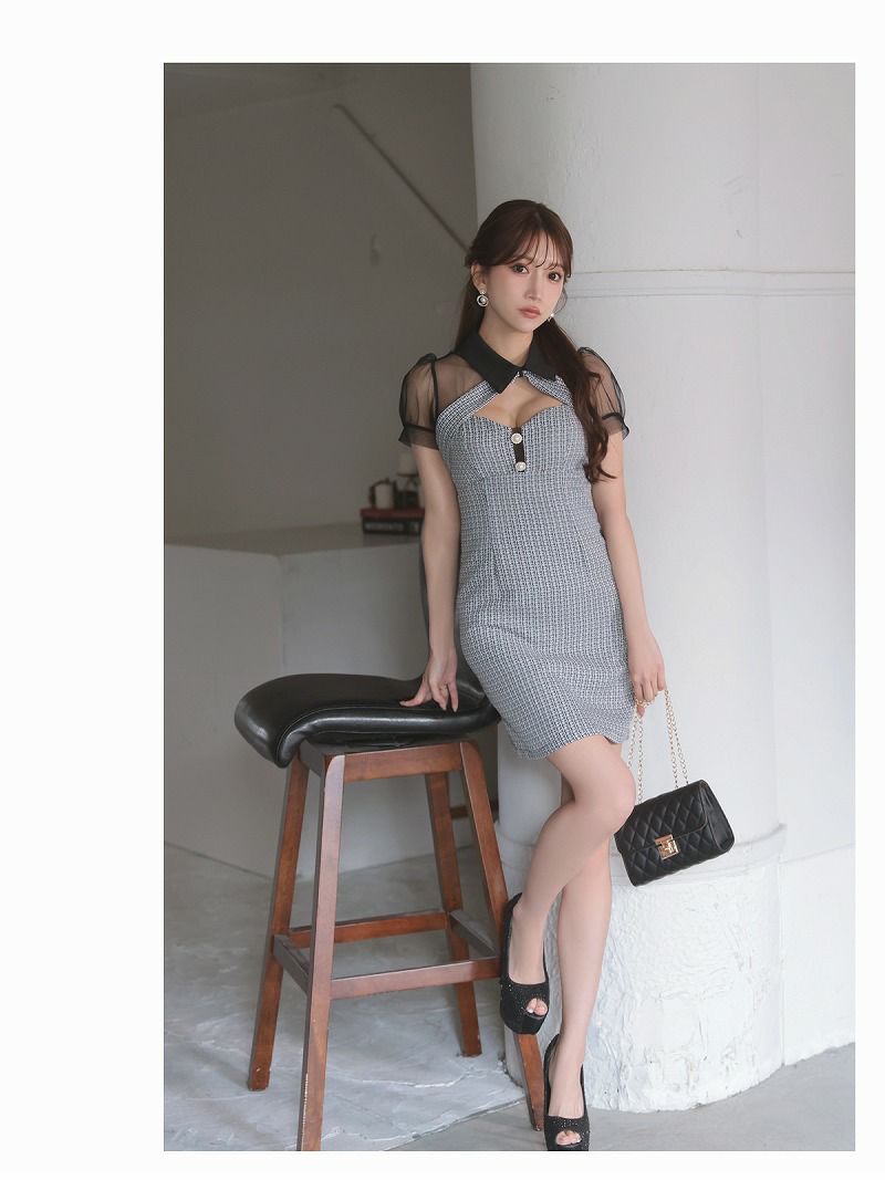 シアースリーブ襟付きツイードタイトミニキャバドレス【Ryuyu】