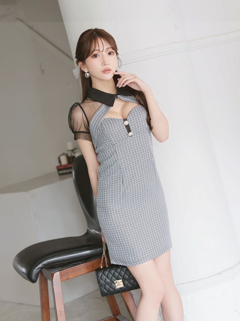 サマーツイード胸盛りシースルータイトミニキャバドレス【Ryuyu】