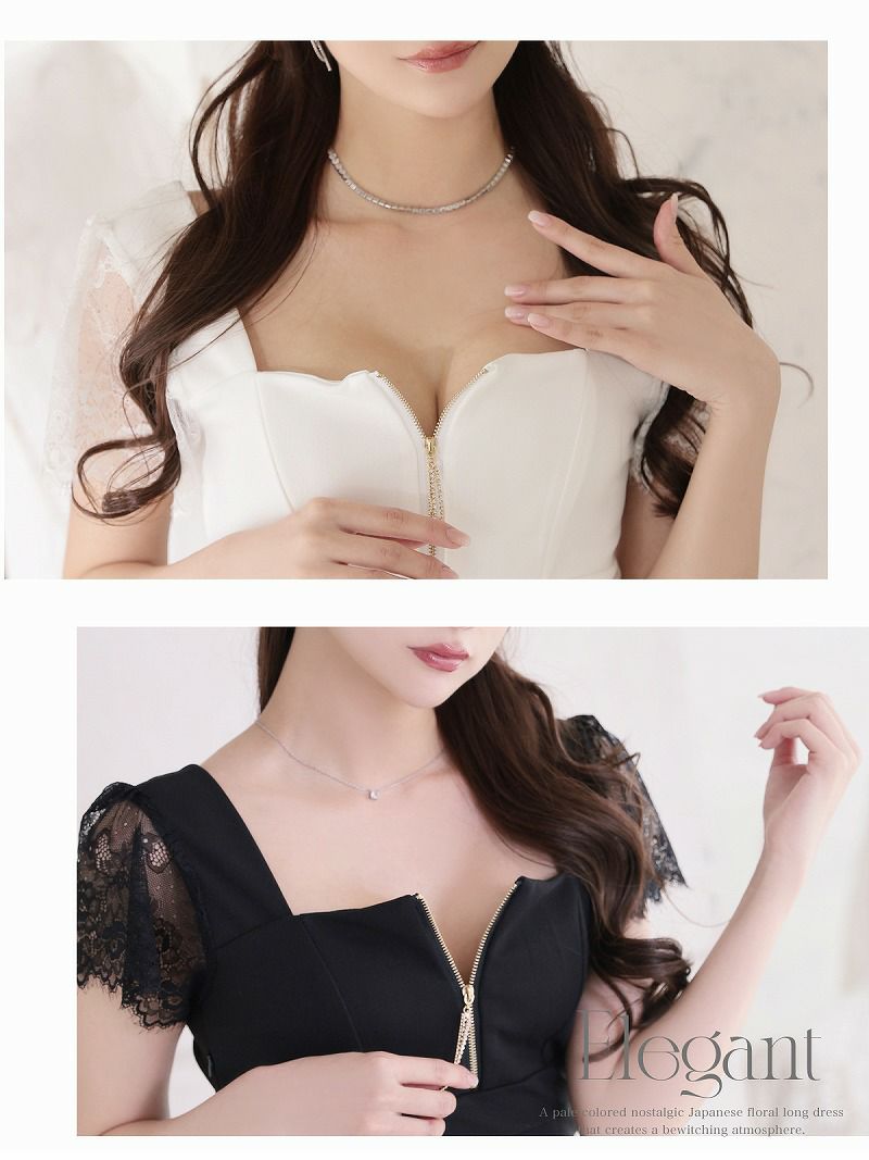 胸元のジップで谷間見せが叶う、エッジの効いたキャバドレスです。