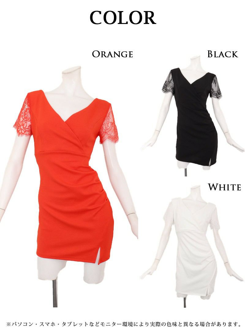 体型カバーも色気も叶える♪ 先行予約割¥2990→¥2841!※一部予約販売※カシュクールメッシュ袖タイトミニドレス りせり 着用 ミニドレス【RyuyuChick】(S/M/L/XL(2L)/XXL(3L))(ブラック/ホワイト/オレンジ)