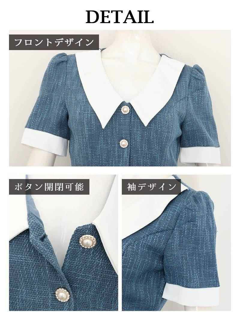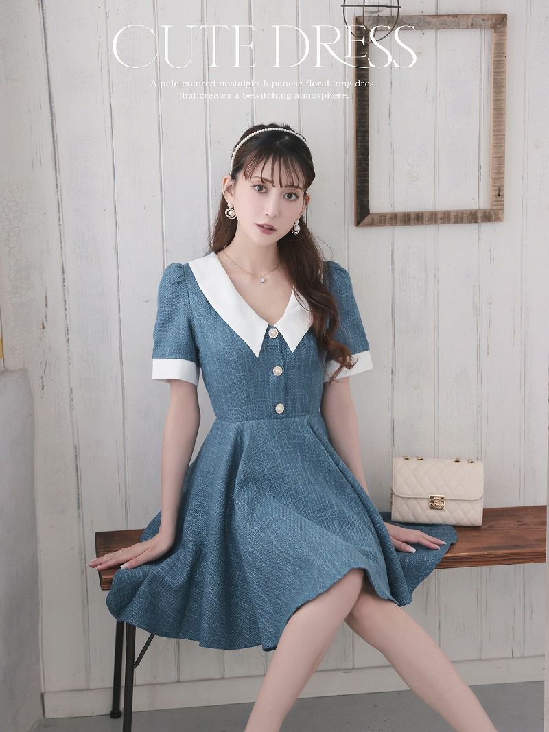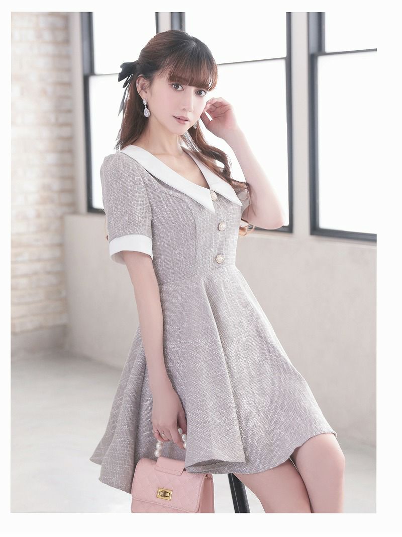フレアシルエットが女性らしい可愛さを引き立てるツイード素材の韓国風キャバドレスです。