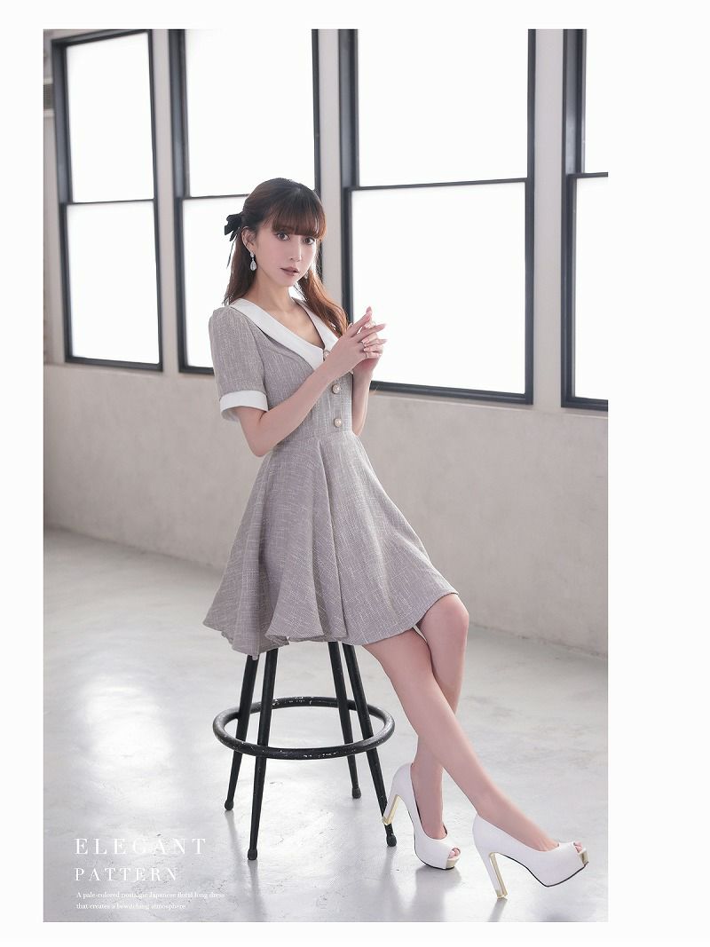 ツイードフレア袖付きガーリーミニキャバドレス 加賀美早紀 着用 キャバクラドレス【Belsia】
