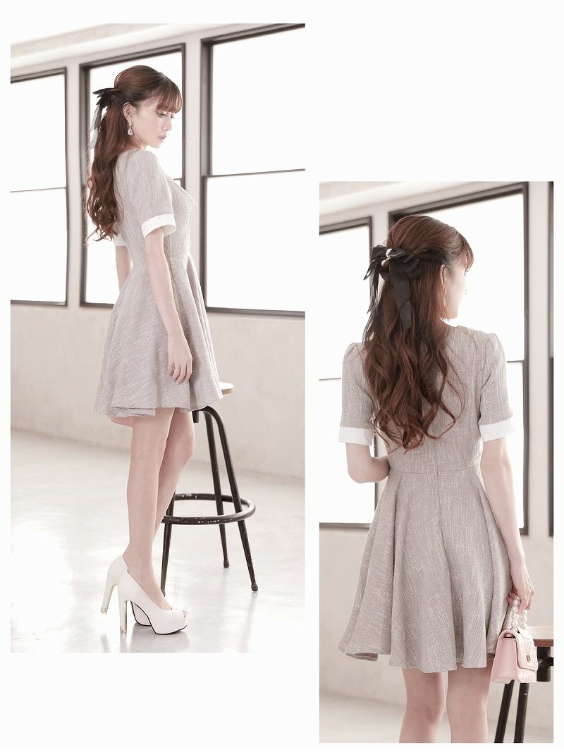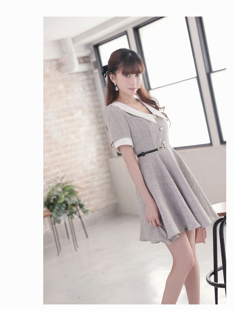 サマーツイードフレアワンピース 加賀美早紀 着用 キャバクラドレス【Belsia】