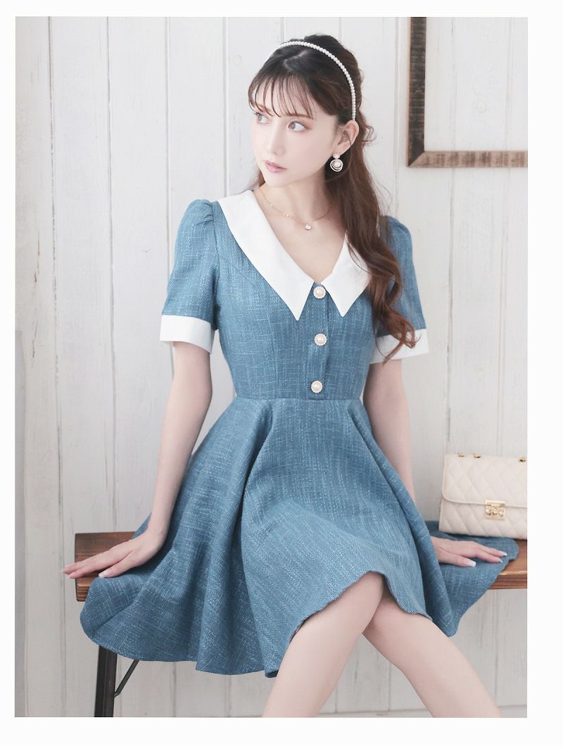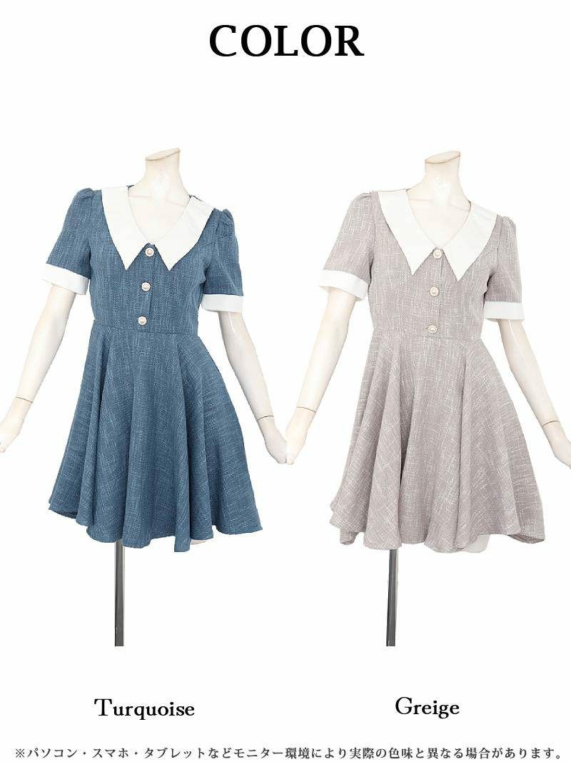 あざとさも可愛さも叶える韓国風ワンピ サマーツイードフレアワンピース 加賀美早紀 着用 キャバクラドレス【Belsia】(S/M/L/XL(2L))(ターコイズ/グレージュ)