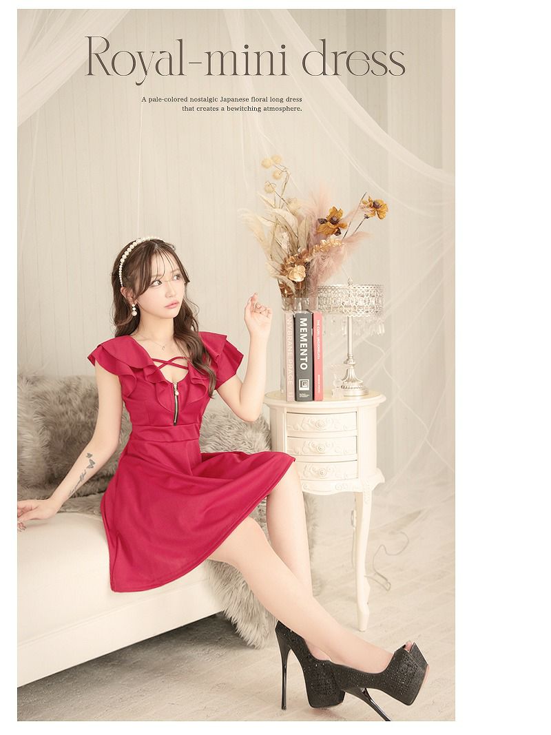 ※一部予約販売※ふんわりフリルシルエットプチプラミニドレス りせり 着用 キャバドレス【RyuyuChick】