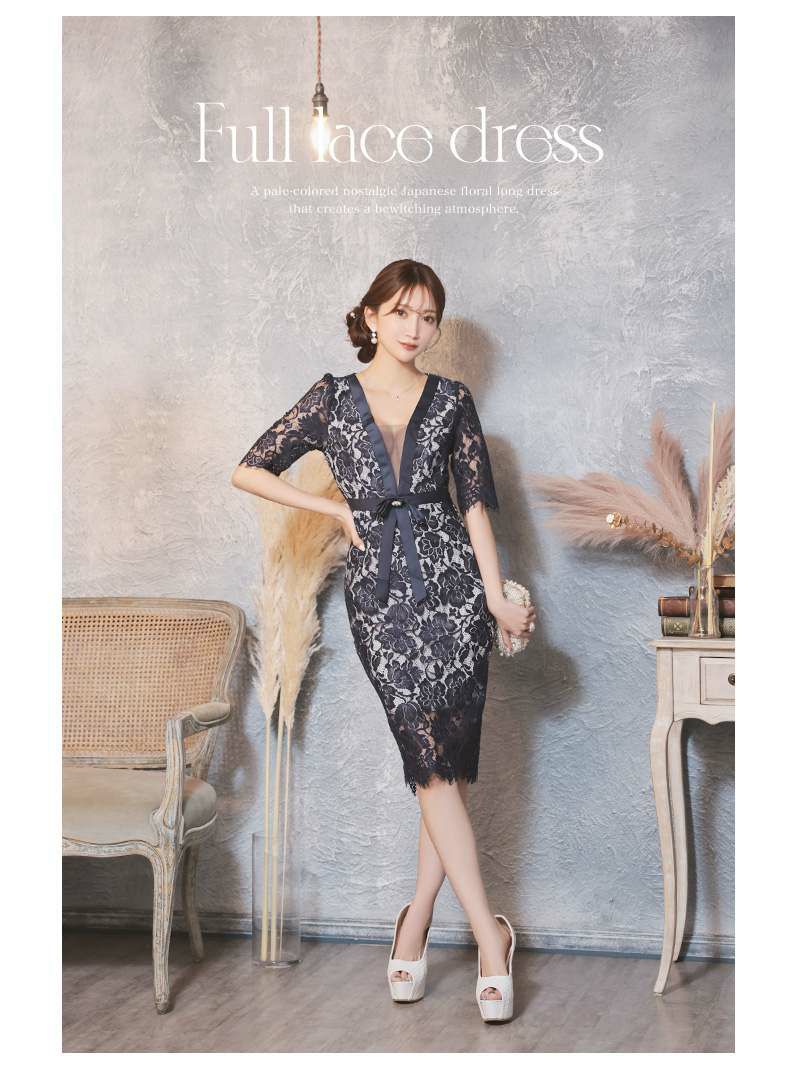 ネイビー総レース五分袖タイトミニドレス【Ryuyu】