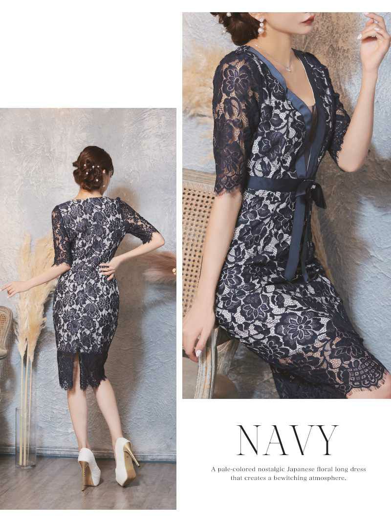 ネイビーカラーの総レースは落ち着いた品があり、ワンランク上のキャバ嬢さんやホステスさんにぴったりな大人デザインのドレスワンピースですよ。