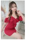 5. 先行予約割¥3980→¥3781!※一部予約販売※大きめフリルが可愛いギャザー入りオフショルタイトミニドレス りせり 着用 ミニドレス【RyuyuChick】(S/M/L/XL(2L))(ブラック/レッド/ライトグリーン)