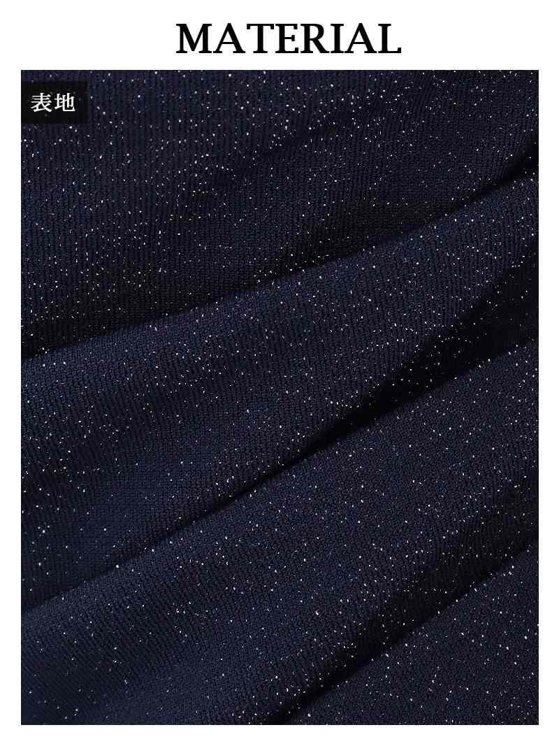 5. きらきらラメ入り素材のストレッチが効いたカシュクール風袖付きタイトミニドレス りせり 着用 キャバドレス【RyuyuChick】(S/M/L/XL(2L)/XXL(3L)/XXXL(4L))(ネイビー/レッド/ブラック)