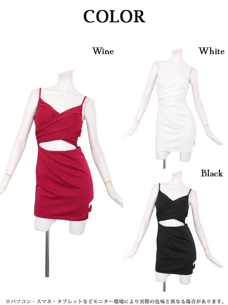 4. 胸元のバストクロスデザインがセクシーに谷間を強調する肌見せタイトミニドレス りせり 着用 キャバドレス【RyuyuChick】(S/M/L)(ブラック/ホワイト/ワイン)