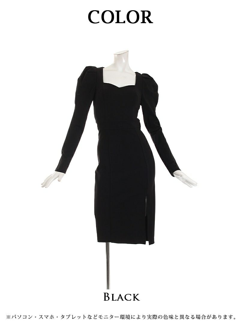• 膝丈スリットニットキャバワンピース KANO 着用 韓国ドレス【DAYS PIECE】(M)(ブラック)