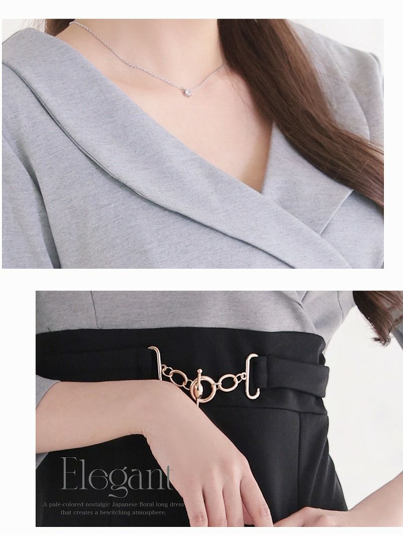 • チェーンストラップ谷間見せタイトミニドレス【Ryuyu】(S/M/L)(ブラック/ホワイト/グレー/ピンク)
