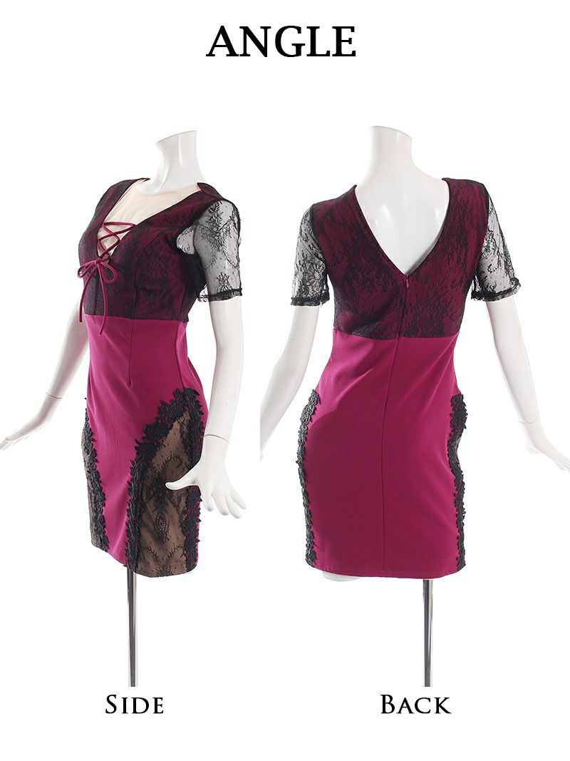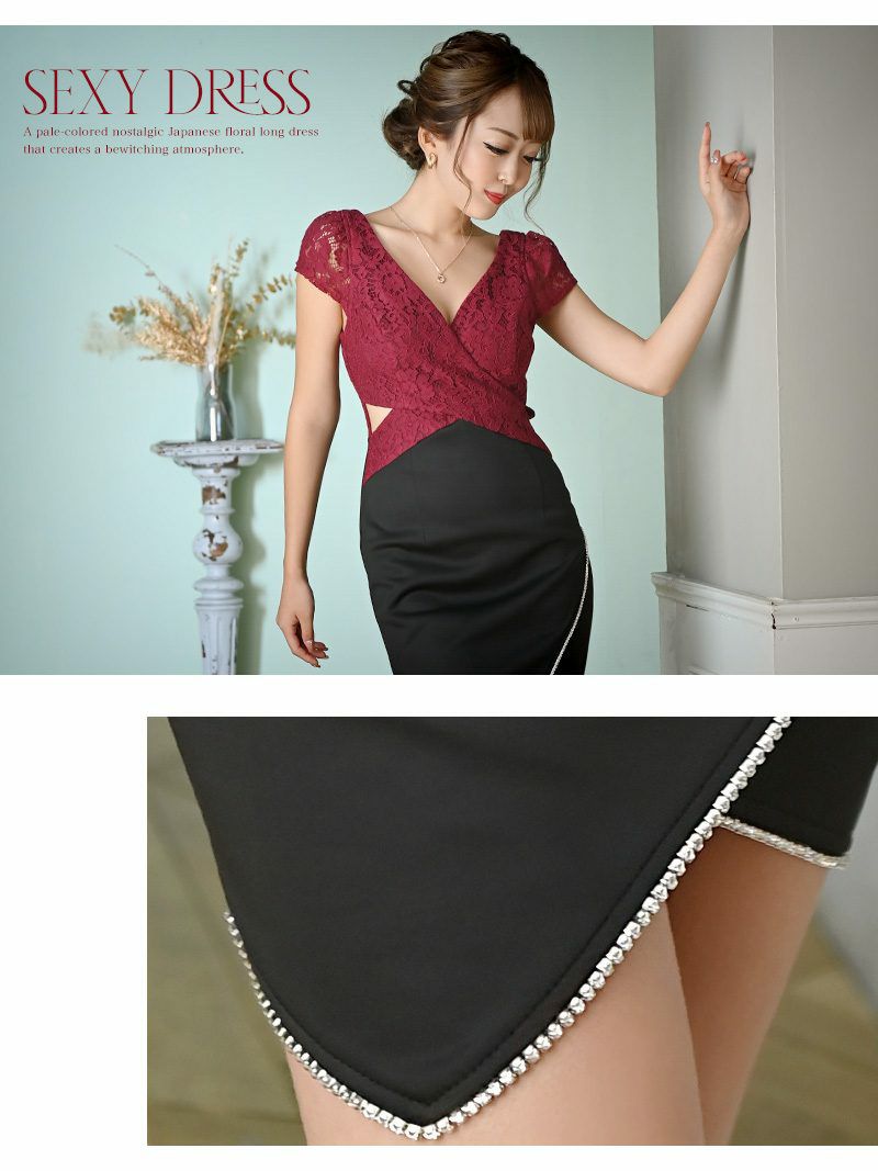 • ペプラム風ブラックレース袖付きキャバドレス【Ryuyu】(S/M/L)(ミント/ピンク)