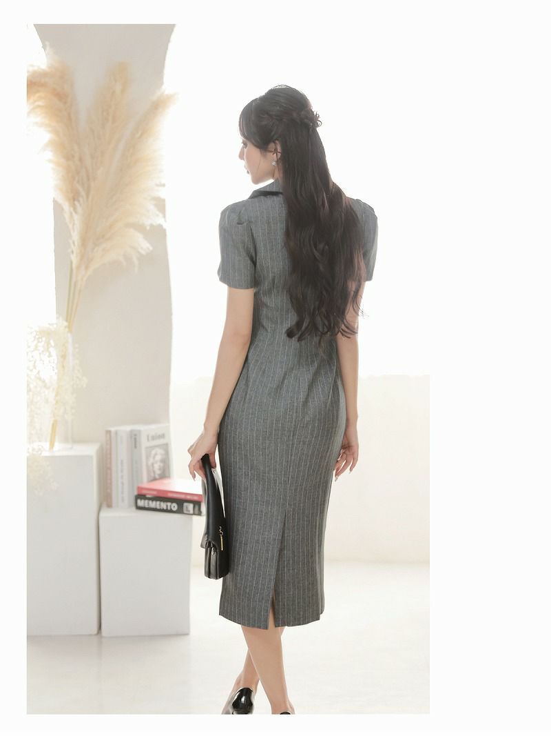 • 美脚魅せセクシースリット膝丈KANO着用韓国キャバ嬢ワンピース【DAYS PIECE】(S/M/L/XL(2L)/XXL(3L))(ネイビー)