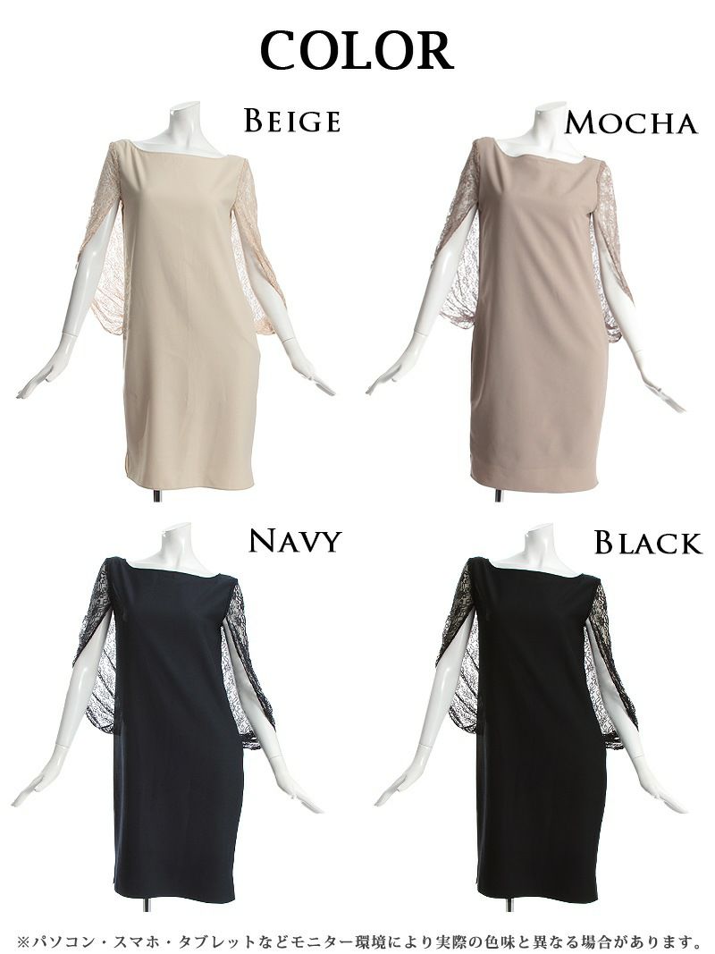4. レース×ケープスリーブエレガントドレス【Ryuyu】(M/L)(ネイビー/ベージュ/モカ/ブラック) ptpl
